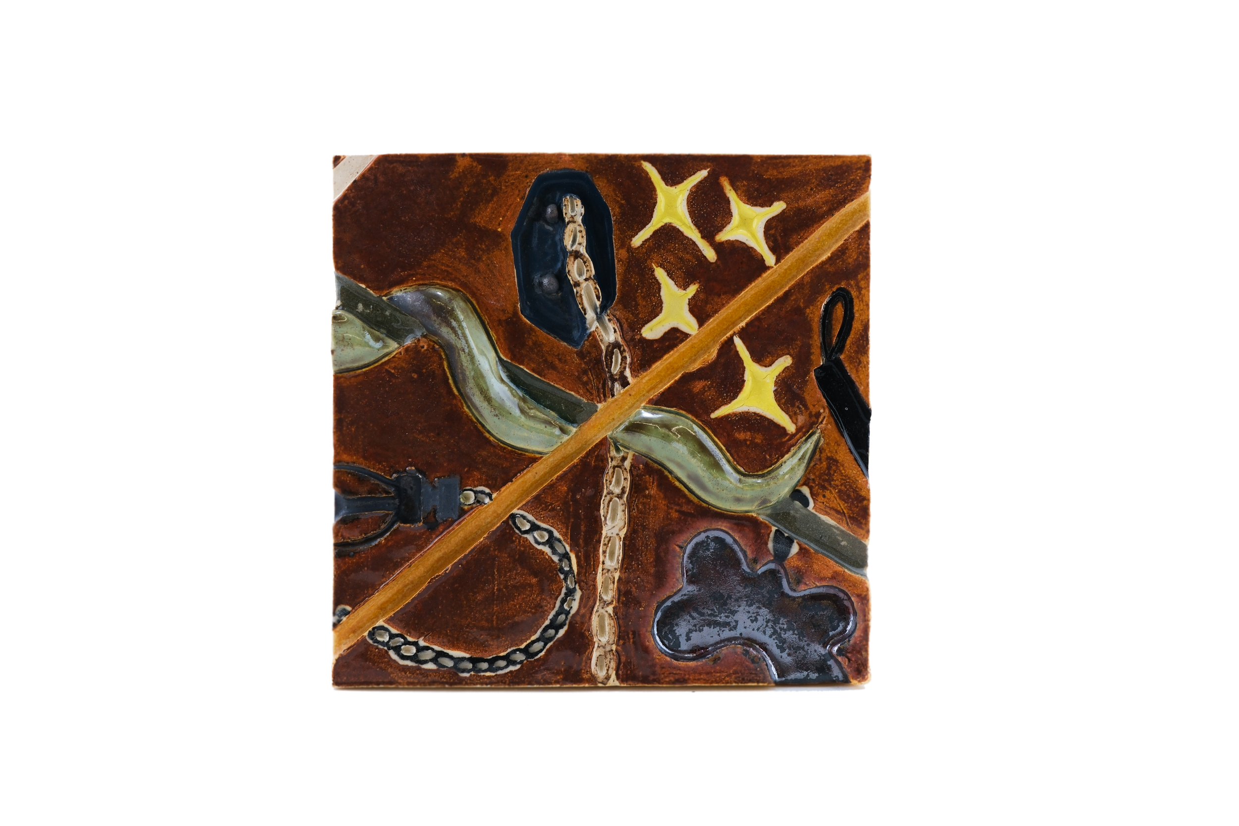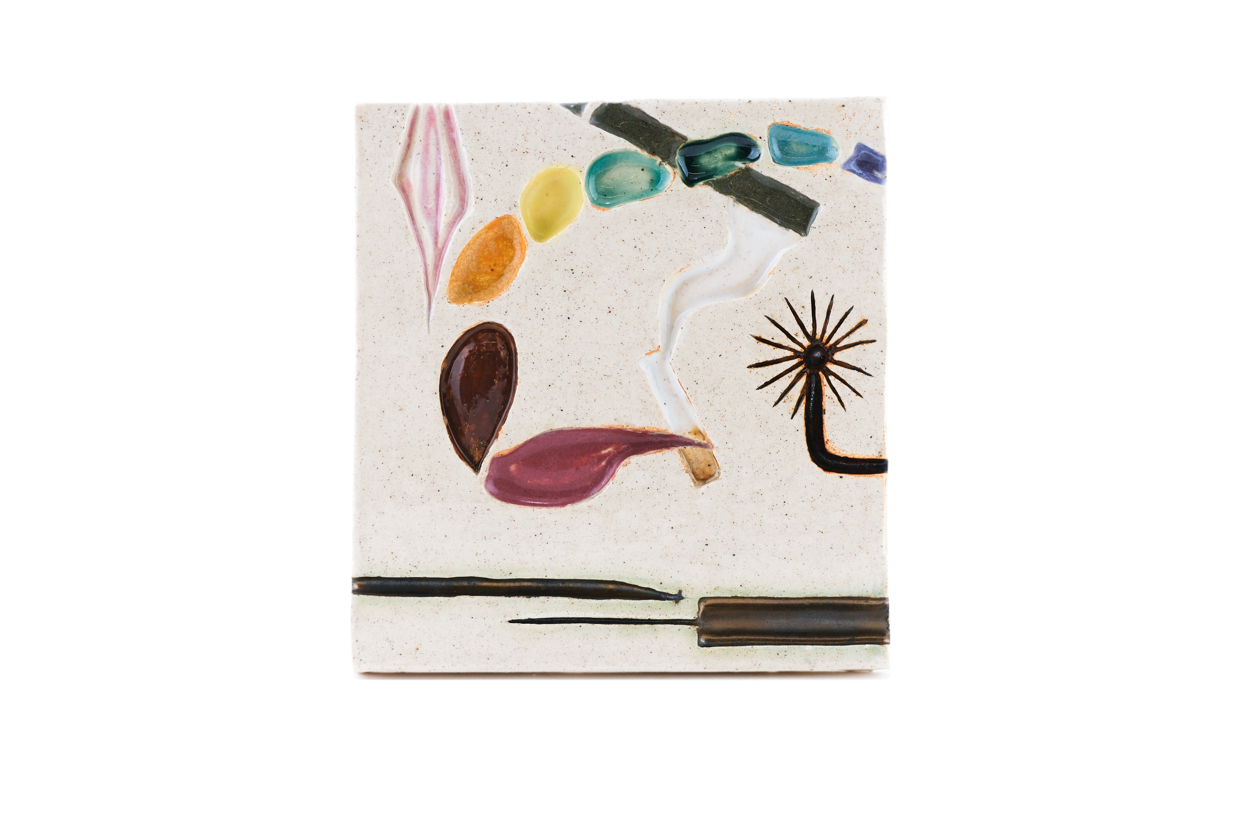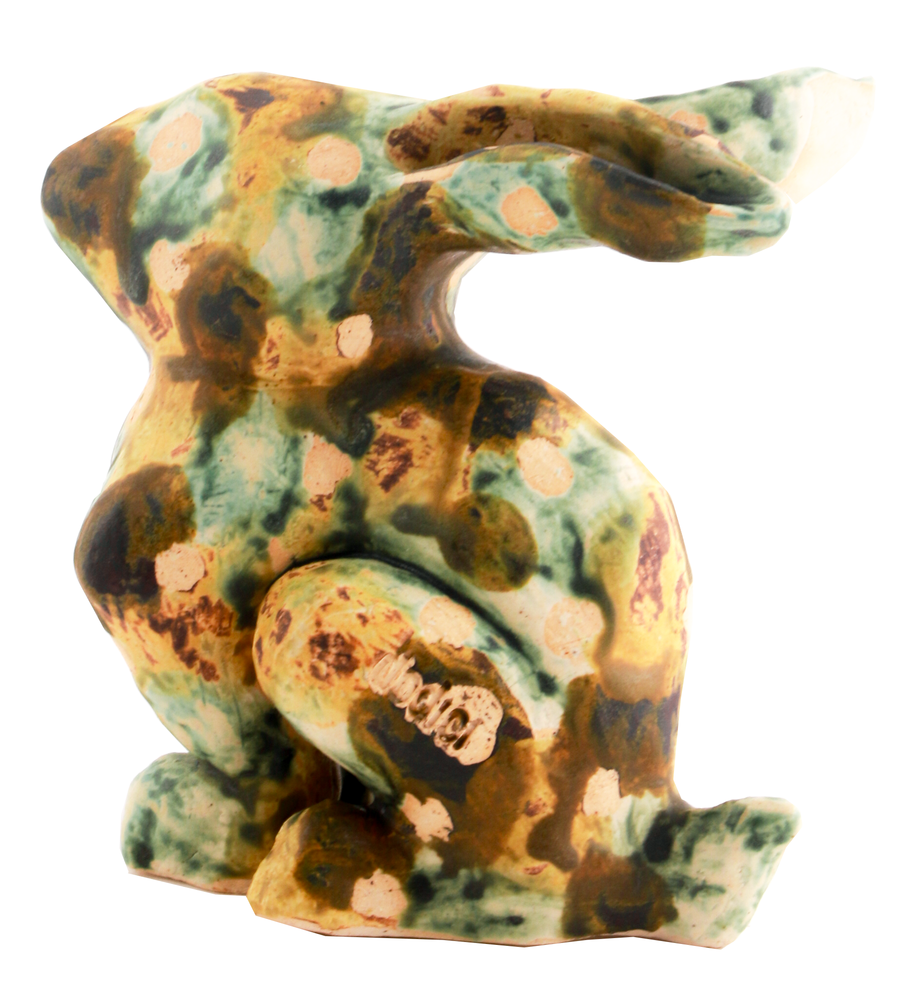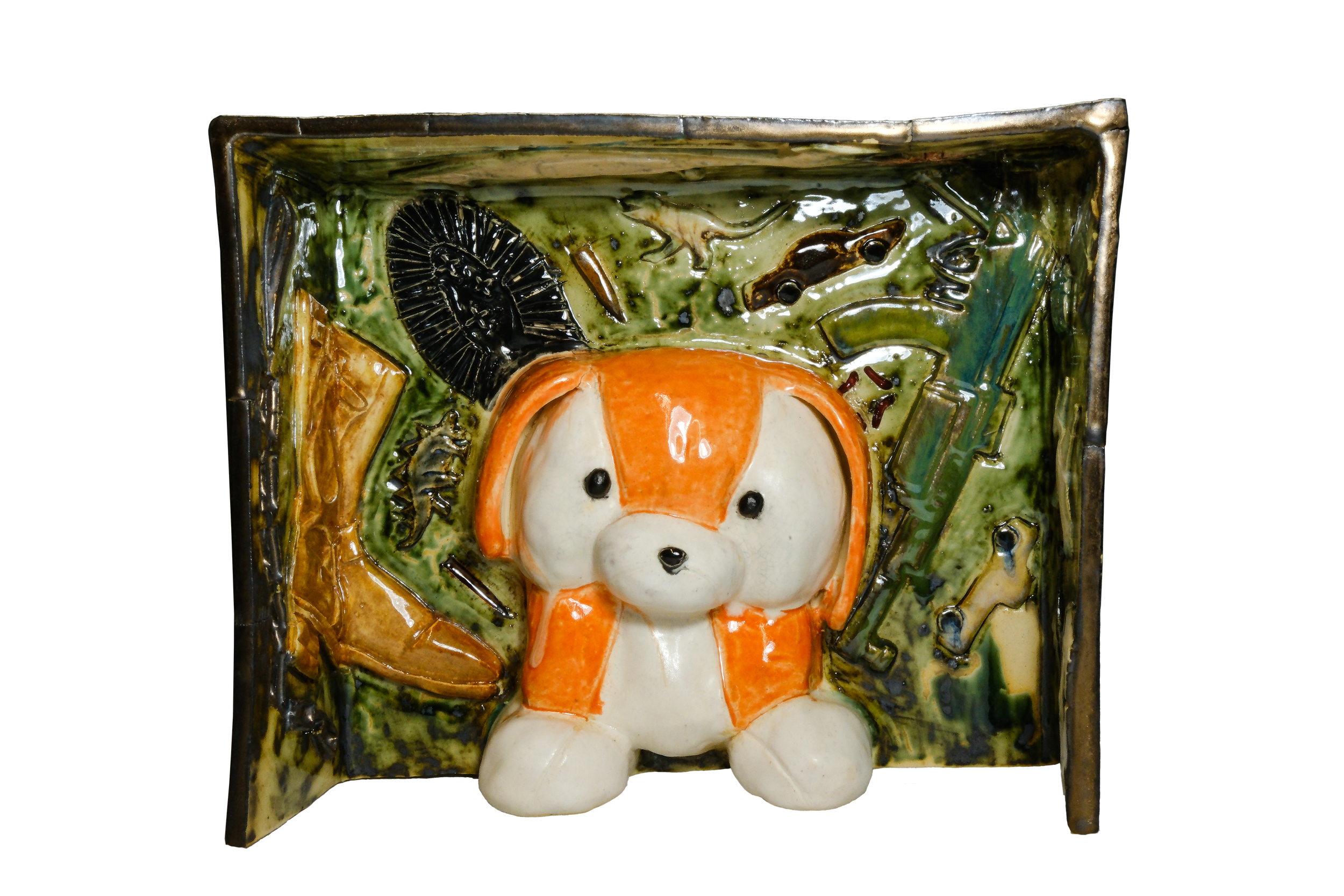 white stoneware, self-made decorative slip and glaze, wax resist; sculpted